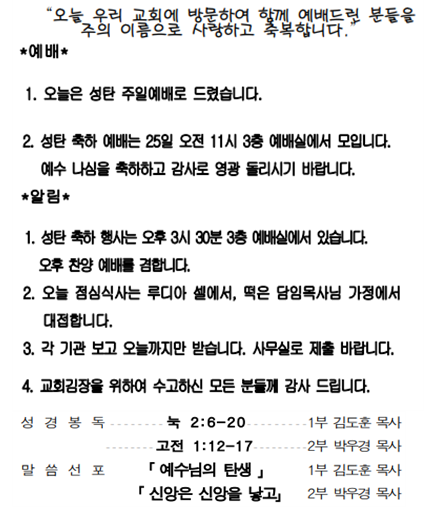 2025년 12월 21일 주일(광고, 주일 낮 설교)