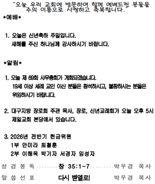 2026년 1월 4일 주일(광고 , 주일 낮 설교)